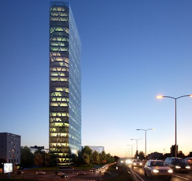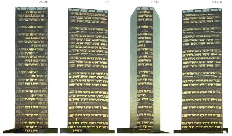 Naime, riječ je o zgradi visine 123 metra koja bi trebala činiti jedan od najvažnijih “landmarkova” (kako bismo mogli prevesti ovu riječ na hrvatski? Orijentir?) grada. Neki gradovi (npr. većina američkih ili recimo Frankfurt) su odlučili zbiti svoje visoke zgrade u ograničeni gradski prostor, najčešće u centru, oko kojih se nalaze puno niži objekti, dok su neki drugi gradovi (npr. Beč, koji ih je smjestio na dijelovima rubova grada) odlučili drugačije rasporediti svoje visoke zgrade, a u tome društvu je i Zagreb. Većina zagrebačkih visokih zgrada se nalazi raspoređena uzduž Zagrebačke i Slavonske avenije te uz Vukovarsku (gdje se na istoku, uz Radničku, nalazi oveća “enklava” visokogradnje) uz poneki izuzetak (Cibona, hotel Panorama, neboderi uz Branimirovu itd). Ja osobno ne volim staklenobetonske rezervate nebodera koji mi djeluju vrlo nehumano i sa urbanističkog i čisto estetskog stanovišta mi se čini logičnije rasporediti ih uzduž određenih važnih prometnih pravaca. No, tu se uvijek dolazi do pitanja “suživota” tih zgrada i okoline – kako će biti ljudima u okolnim kućicama koje će živjeti u sjeni (i doslovnoj i prenesenoj) te zgradurine.
