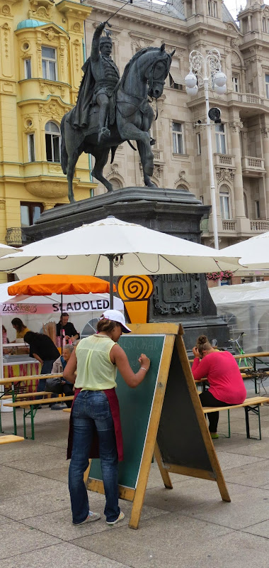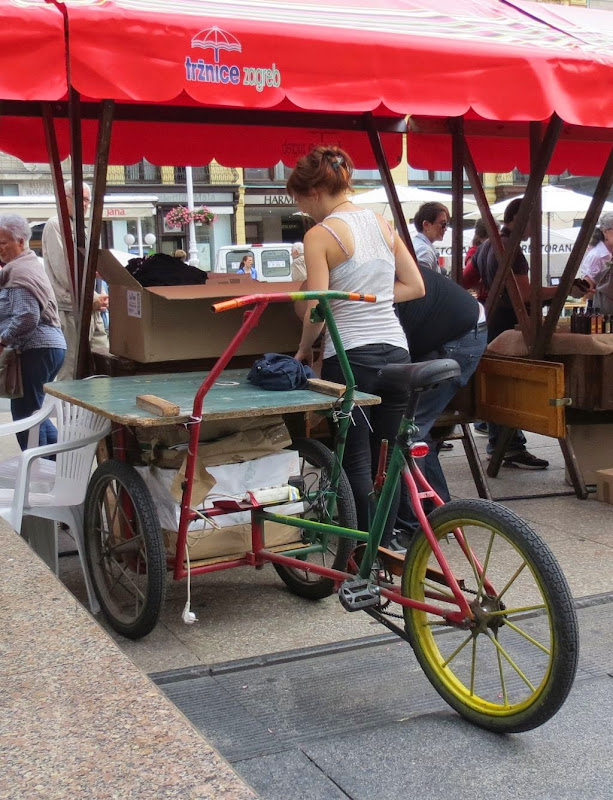 Iako se ne mogu nazvati vatrenim obožavateljem ovog sajma, već bi mi više odgovarao epitet “podržavajućeg sličnomišljenika” ovaj sajam mi je definitivno puno draži od mnogih sličnih manifestacija koje se održavaju na trgu. Em je tu svega dva dana (za razliku od onih šatorčina koje zauzmu Trg na više mjeseci …), em je puno “fluidniji” (puno je više slobodnog prostora oko štandova što smanjuje gužvu i povećava prohodnost i pregled … ovogodišnji dugački niz štandova je impresivan i zapravo i lijep, dobro se uklapa u trg kao takav – opet, za razliku od velikih šatora …), em se ovdje radi o ponudi koja je alternativa onome što se nudi u većini lokala centra grada (opet, za razliku od velikih šatora …), gledajući i samu robu i ljude koji ju prodaju, pa čak i način na koji se ta roba dovozi (vidio sam dostavu robe biciklima na više štandova!) …. a za kraj, drago mi je i što ovaj sajam bar dijelom evocira povijest Jelačić placa (iz doba sajmovanja na Harmici) pa se tu sad može bar ova dva dana nabaviti i ono što je odlikovalo nekadašnje tržnice (naravno, uz modernije dodatke).
