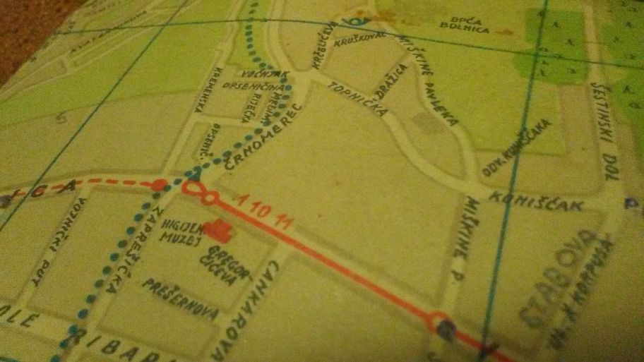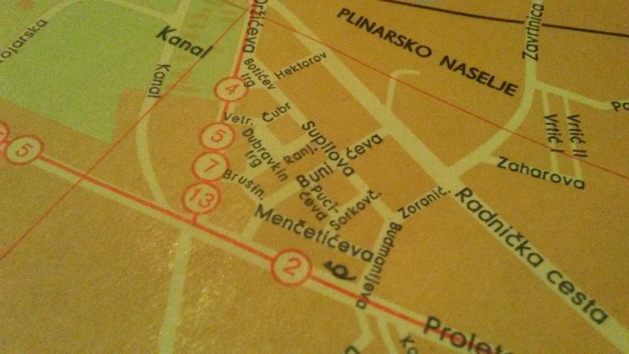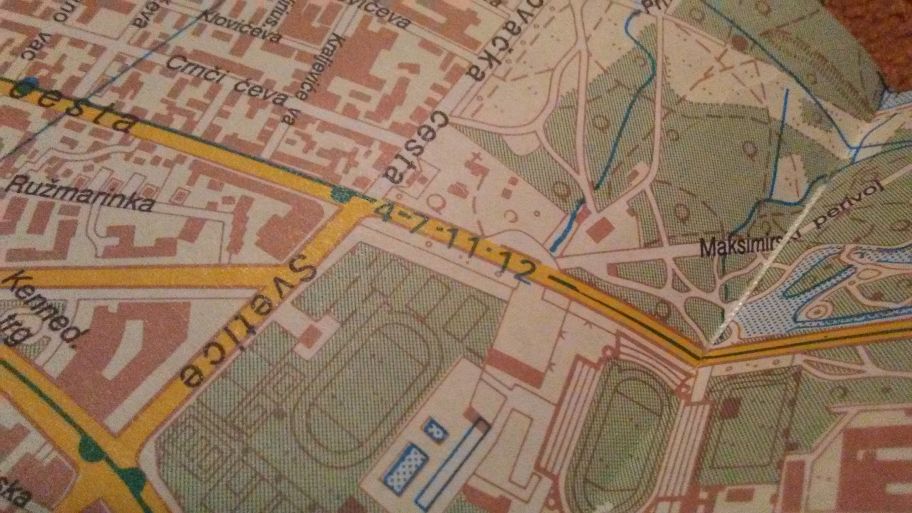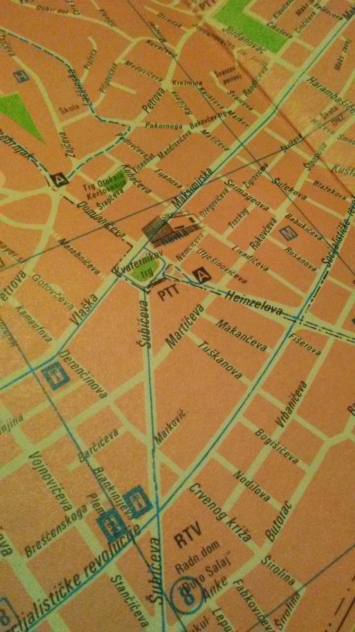 (gledam sad i web kartu, Google Maps, sa svojim “čušpajzom” oznaka i oznakica pri čemu tramvajske linije uopće nisu označene … eh. Open street map i Scribble maps su tu bolji, oni ih imaju označene – ali, neupadljivom sivom bojom.)