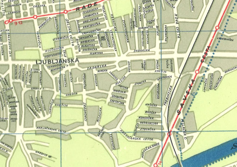 Posle jako puno godina ponovo sam u Zagrebu, na Kneziji pokusavao pronaci gde je nekada bila kuca moje bake (Stonska cesta br. 66) - onaj kraci dio izmedju Kalinovice i Cavtatske sa svega tri kuce. Ali od zavoja u Horvacanskoj cesti koji jos uvek tamo stoji i uliva se u sadasnju Tina Ujevica nekako mi nije uspevalo. Postoji deo Kalinovice od Nove ceste ali je kratak. Zato hvala na ovoj mapi iz 1958. (predpostavljam) jer mi pomaze da barem nekako lociram poziciju kuce medju sadasnjim novim zgradama. A sa zadovoljstvom sam procitao istorijat skole u Horvacanskoj jer je tamo u skolu isla i moja majka koja je kao mala imala snove "da buju po Horavacanskoj vozili tramvaji"!!!