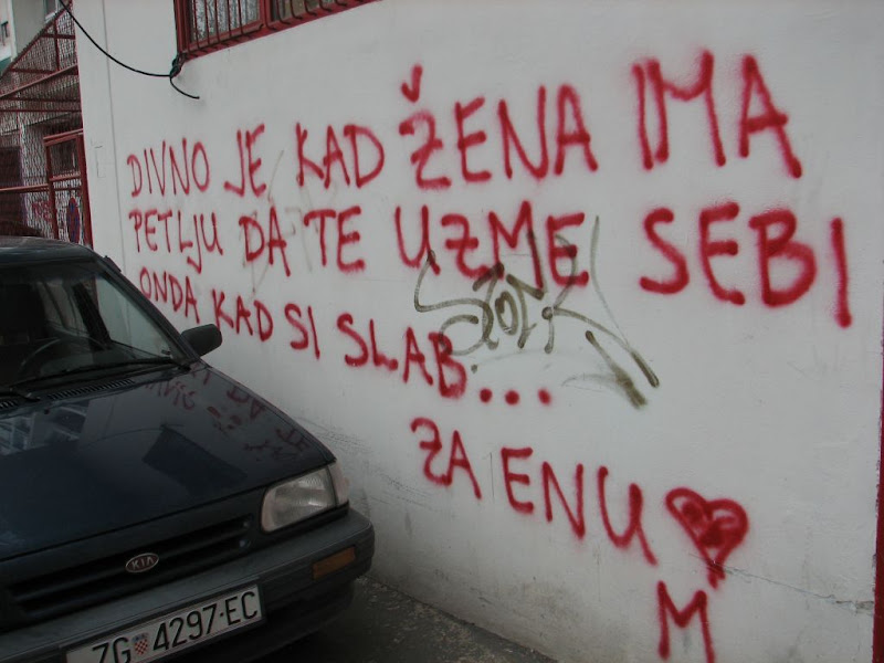 Divno je i probuditi se, izaći iz kuće te otkriti da ti je preko noći netko zašarao pola kuće. Ena (i njeni roditelji) bi sigurno bila sretna da je to napisano na njenoj fasadi. :)