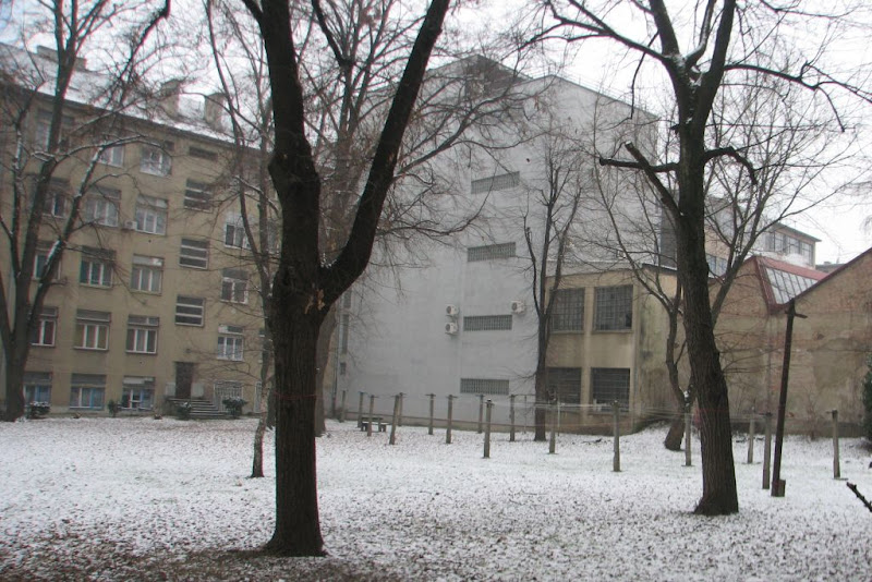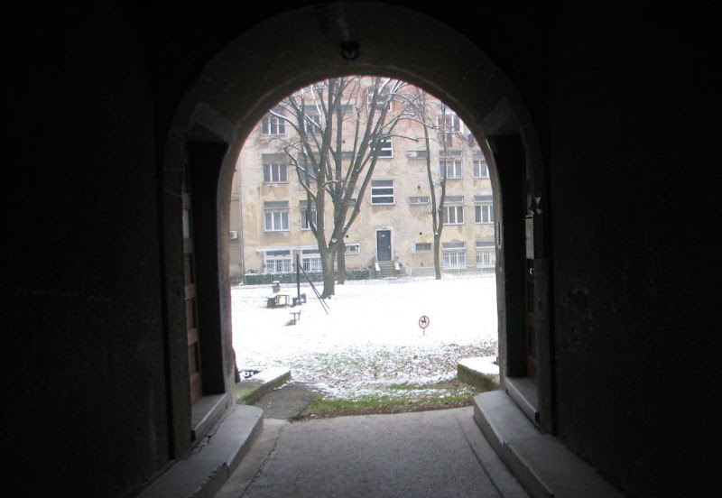 Zapadna strana dvorišta zimi. Uočite “instalaciju” (očito starijeg datuma) za sušenje veša! Snimio: Vanja