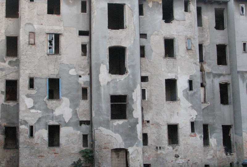 Paromlinska ulica, pogled odozada (sa novootvorenog parkirališta) na devastirane zgrade preko puta Zagrebačke banke u Paromlinskoj ulici, jedva 300-tinjak metara od Glavnog kolodvora, Gradskog poglavarstva i Koncertne dvorane Vatroslav Lisinski. Snimio: Vanja