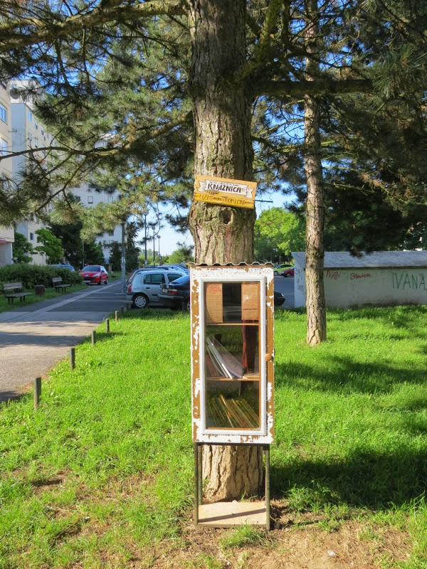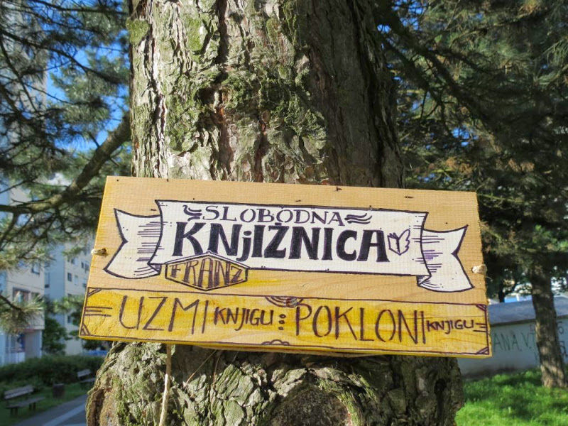 Jedna od akcija nastalih na takvim načelima je i prva slobodna knjižnica u Zagrebu koja se pred nekoliko tjedana pojavila u Prečkom, u Jarnovićevoj ulici, u parku ispred kućnog broja 1. O ovoj inicijativi je već bilo govora u raznim medijima, no nije zgorega ponoviti glavne informacije: knjižnicu je pokrenuo kreativni dvojac pod pseudonimom “Lolas Atomica” iza kojeg se kriju Marko Štrok i Ivona Komorčec kojima je u izradi knjižnice pomogao i pokojni Markov djed (i kome se u čast knjižnica zove “Franz”). Ideja knjižnice je slobodna i besplatna cirkulacija knjiga uz nekoliko osnovnih pravila: