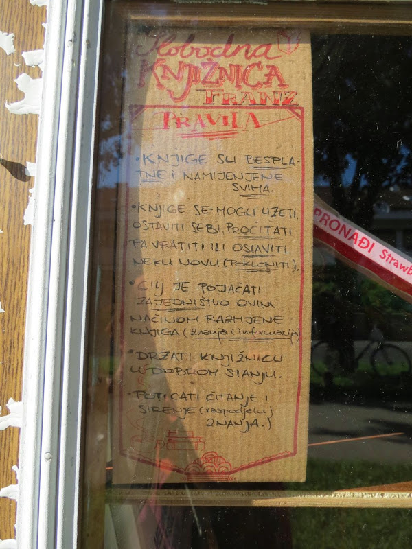 Ako vam je knjižnica usput, provjerite to i sami, a do tada pogledajte niz linkova vezanih uz tu temu (većinu njih je odabrao sam Marko) i uočite kako je raznorodan niz imena za akcije tog tipa: “pop up libraries”, “Free libraries”, “book crossing” (koji je akcija nešto drugačijeg tipa, ali sličnih ciljeva) … a cilj im je zajednički: približiti knjigu čitaocima i potaknuti građane na zajedničku akciju i preuzimanje odgovornosti za javni prostor i njegove sadržaje.
