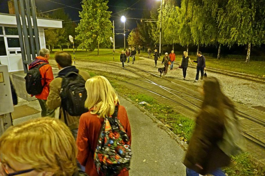Povratak u civilizaciju i na ulična svjetla – ispadamo hrpimice (na iznenađenje ostalih prolaznika) s polja na okretište. Snimila: Anica Mazura