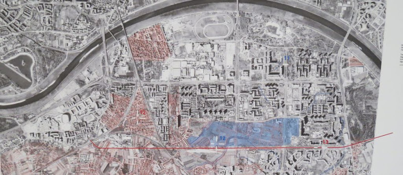 Prijedlog regulacione osnove iz 1932. sa smještajem sportskih objekata južno od Save, preneseno sa izložbe.