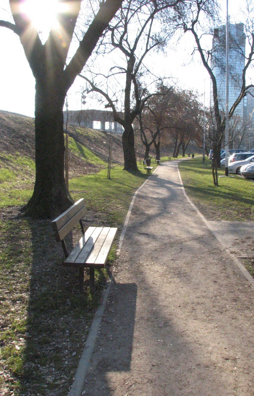 Naravno, ne savjetujem vam šetnju samom prugom – koliko god je promet po njoj relativno rijedak (bar u usporedbi sa glavnim smjerom, od Zapadnog kolodvora ka Glavnom i obrnuto) stalno treba biti na oprezu. A ja sam, da mi šetnja bude ugodnija i opuštenija, sišao sa samoga nasipa i dio puta krenuo lijepo uređenim šetalištem uz Brozovu ulicu. Taj izduženi park/šetalište je i nekada, prije uređenja, bio vrlo ugodno mjesto za šetnju, a sada, nakon uređenja, iako je izgubio dio šarma zbog suženog zelenog pojasa kako bi bilo više mjesta za parkiranje, ipak je i nadalje sasvim ugodan zeleni kutak.