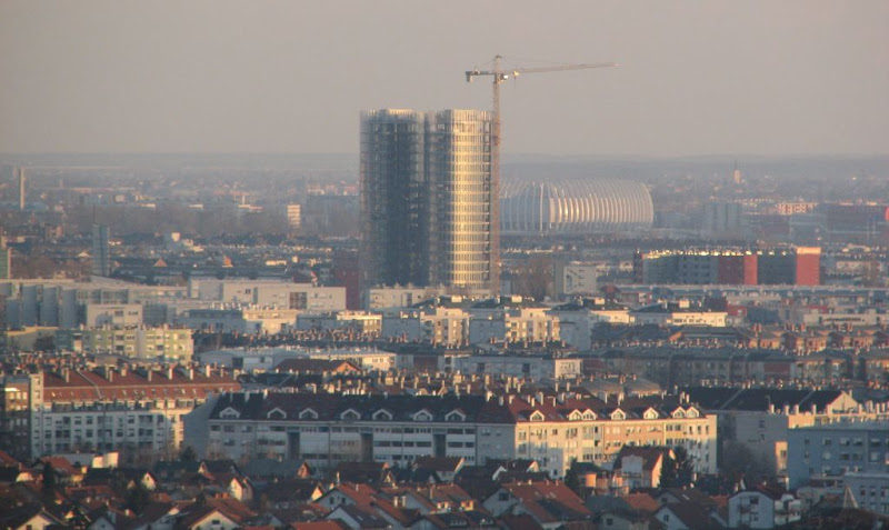 Slojevi grada: obiteljske kuće, niske zgrade Malešnice, a zatim suvremeni tornjevi, Arena … Snimio: Vanja