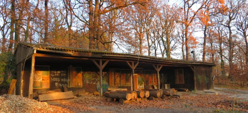 Napuštena baraka usred šumice – danas očito poligon za drvodjelske i grafiterske radove. Snimio: Vanja