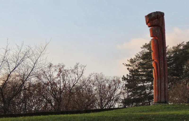 Skulptura “Stup svečanosti” Milene Lah (postavljeno 1985.) na vršnoj livadi sa pogledom prema Dubravi i Žitnjaku. Snimio: Vanja