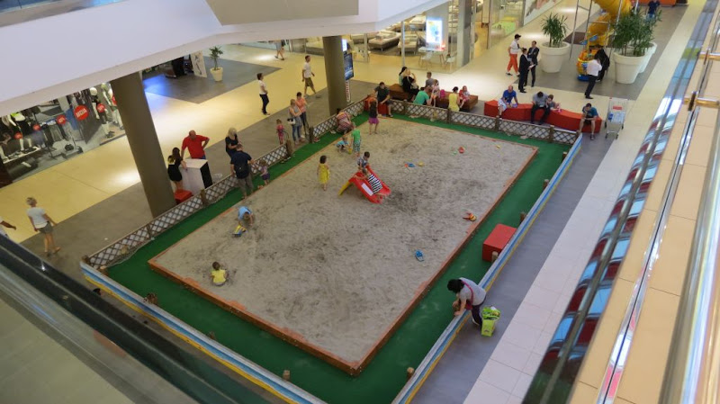 Ali, ono što me je ovih dana iznenadilo – uglavnom u pozitivnom smislu – je pojava velikog pješčanika na nultoj etaži trgovačkog centra CC1 east! Iako se stalno žalim(o) kako se malo pomalo sav život seli u trgovačke centre i da ljudi više ne znaju/ne mogu zamisliti ni jedan segment života bez tih objekata, bilo mi je drago vidjeti kako su i oni prepoznali potrebu/želju djece da se igraju u pijesku i kako je takva “amorfna igra” (za razliku od mnogih drugih gdje djeca samo “gutaju” unaprijed pripremljene sadržaje) potrebna za razvoj dječje kreativnosti. Da, priznajem, vjerojatno je ta ideja ostvarena tek kao sredstvo za ostvarenje još većeg prometa centra i veće dobiti … ali, ovo je “sredstvo” ipak usmjereno i na opću dječju (i roditeljsku) dobrobit.