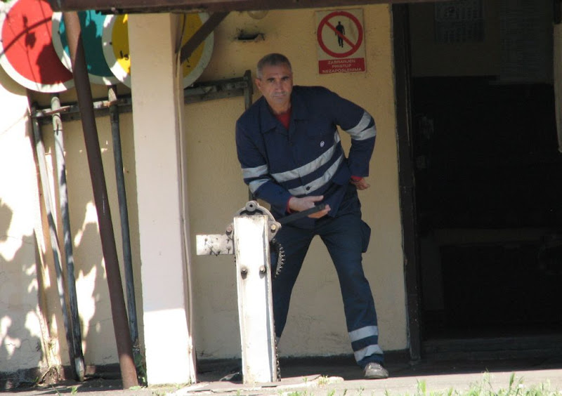 Jedan od posljednjih zagrebačkih čuvara pružnih prijalaza koji još uvijek ručno spušta i podiže brklju, na prilazu Zapadnom Kolodvoru. Snimio: Vanja