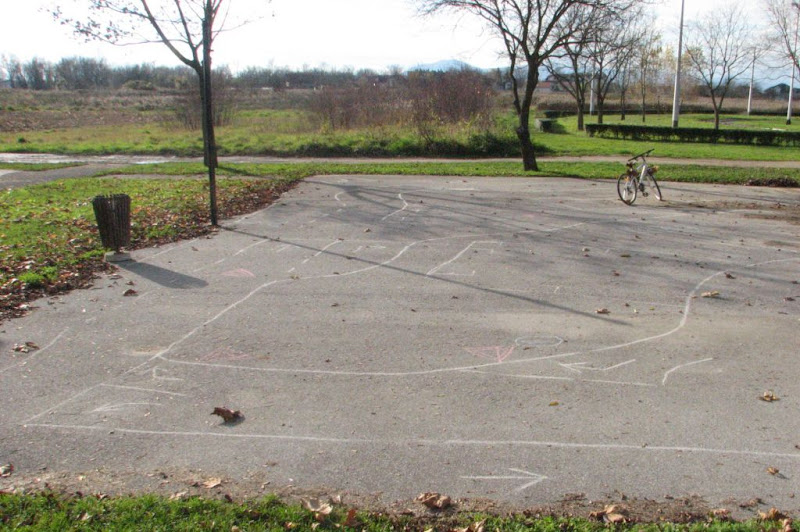 No, kako bismo to bar malo nadoknadili, odlučio sam sinu za rođendan pokloniti privremeni prometni poligon, bar na jedan dan. Uzeli smo krede u boji i na obližnjem, najčešće neupotrebljavanom igralištu nacrtali splet cesta, zajedno sa znakovima, kružnim tokom, parkiralištima (semafore nismo instalirali ). Bilo nam je zabavno 2-3 sata na toem priručnom i rado bismo koji puta svratili i na pravi poligon kada bi takav postojao kod nas!