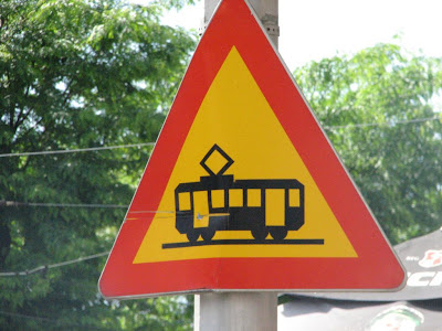 Kaj se tiče obilježavanja tramvajskih stajališta, ta tema zahtijeva poseban i to opsežan post – njihovo se obilježavanje često mijenjalo. No, danas možemo pogledati dva oblika označavanja upozorenja na prijelaz tramvajske pruge. Uobičajeni znak možete vidjeti lijevo (tramvaj na znaku je pomalo staromodan, ćoškast … ), dok krivi (onaj koji u stvari obilježava prijelaz ŽELJEZNIČKE pruge bez branika) možete vidjeti u samom centru grada, na istočnoj strani Tomislavova trga, kod prelaska pruge kojom voze linije 2, 4, 6, 9, 13.