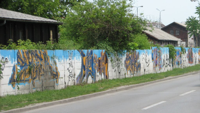Pri tome ne mislim na onaj komadić zida koji gleda na Hanuševu ulicu, već na puno duži (cca 300 metara) koji je okrenut Magazinskoj ulici, preko puta Doma sportova. Taj zid odjeljuje Zapadni kolodvor i njegov sada napušteni teretni dio sa južne strane, prema Trešnjevci, i do lani je on bio potpuno bezoblična tvorevina od betonskih greda uz pokoju reklamu, reklamni pano ili nažvrljani sportski graffit … No, u neko doba tokom 2009. godine je taj zid oslikan nizom murala i njegovo sadašnje izdanje je definitivno ljepše nego prije. Ovi murali nisu tako raznoliki i uzbudljivi kao oni na svježe pofarbanom Zidu u Branimirovoj, no svejedno ih je zgodno za pogledati … prošećimo malo uz taj zid!