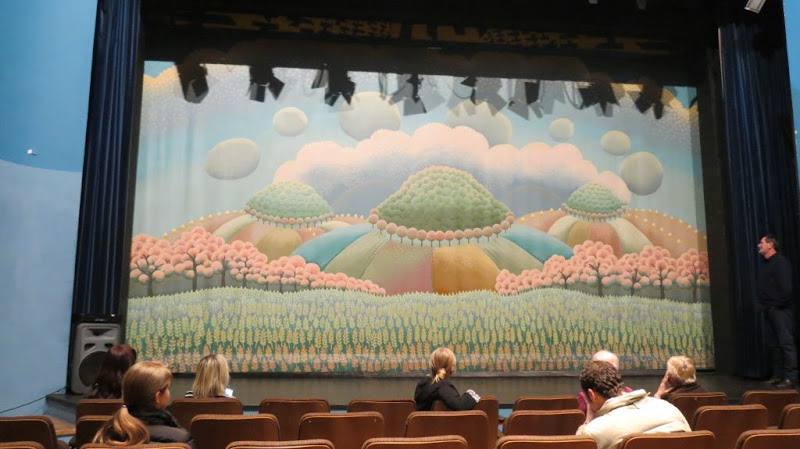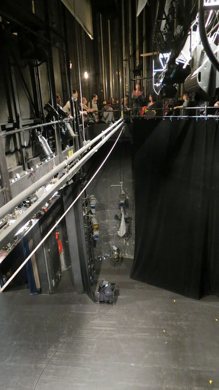 A nakon uvodnog razgovora tokom kojeg smo pogledali i oba zastora, Šutejev protupožarni (koji se diže uz pištanje koje vjerojatno služi kao znak za uzbunu) te svečani Rabuzinov, došlo je vrijeme da se iz gledališta dvorane preselimo na pozornicu. Izvrtili su nas nekoliko krugova na kružnoj pozornici, pogledali kako se lebdi iznad nje, a i što sve ima iza nje, popričali smo sa inspicijenticom Leom koja nam je pokazala od čega se sve sastoji njen vrlo raznolik i vrlo stresan posao, a onda smo krenuli u obilazak drugih prostora. Bili smo u podrumu u posjetu propadalištima, ali i kolekciji keramičkih pločica koje su preostale nakon rekonstrukcije zgrade i služe kao rezerva ako se kad koja od fasadnih pločica ošteti (saznali smo i da zgrada zapravo uoopće nije proširena već je preuređena unutar postojećih gabarita). Bili smo i u scenskoj radionici i saznali ponešto o tome kako nastaje scenografija. Nakon toga slijedio je uspon do garderobe, dvorane za probu i baletne dvorane, a onda jedna od najuzbudljivijih točaka, krug iznad pozornice po galeriji na kojoj se nalez “cugovi” (nosači) sa reflektorima, scenskim priborom i svim ostalim što pomaže u dočaravanju scenske magije. Potom krenusmo u tonsku režiju gdje nam je o svjetlu i tonu na sceni ponešto ispričao kazališni majstor svjetla čiji posao spaja kreativni i tehnički pristup predstavi. Prošetali smo se i “tavanom” kazališta iznad gledališta i na kraju završismo ponovo u kafiću gdje smo sa Kristijanom još malo popričali o kazališnom životu.