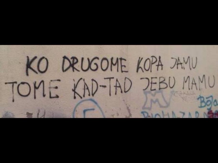 62. “Bolje umrijet od side kao jebač nego od proljeva kao seronja” – nekad stajao na Dubrovačkoj aveniji iza Porezne uprave