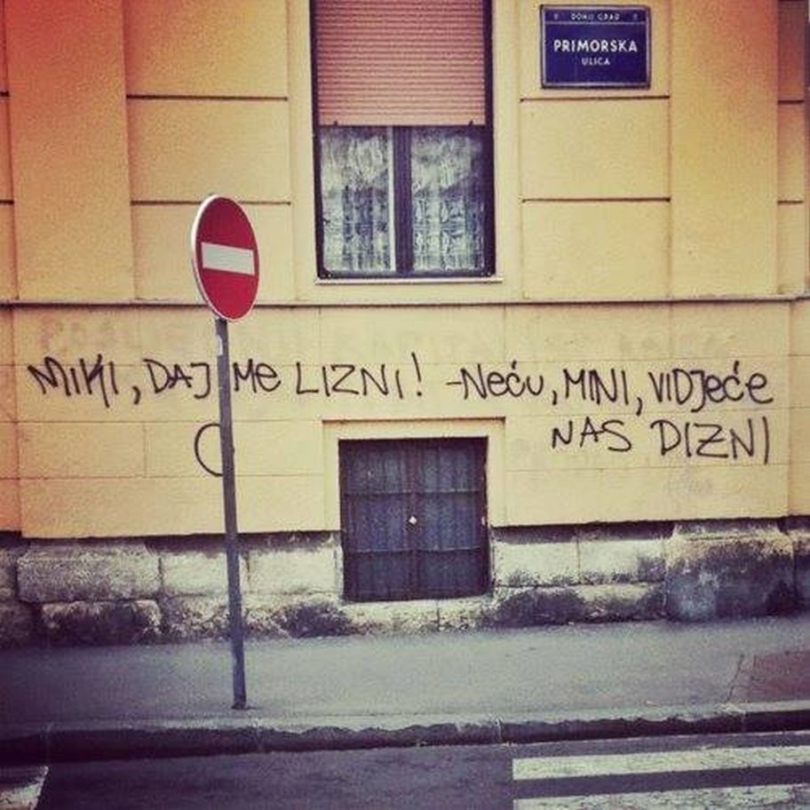 21. “Miki daj me lizni! Neću Mini, vidjet će nas Dizni” – u Ilici, na ćošku sa Primorskom, citat iz jednog od stripova Dubravka Matakovića