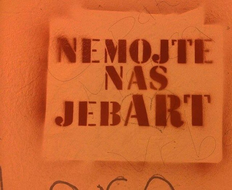 193. “Oprez! Ako previše slavimo, kazne nas.” – na ogradi kod Vjesnika