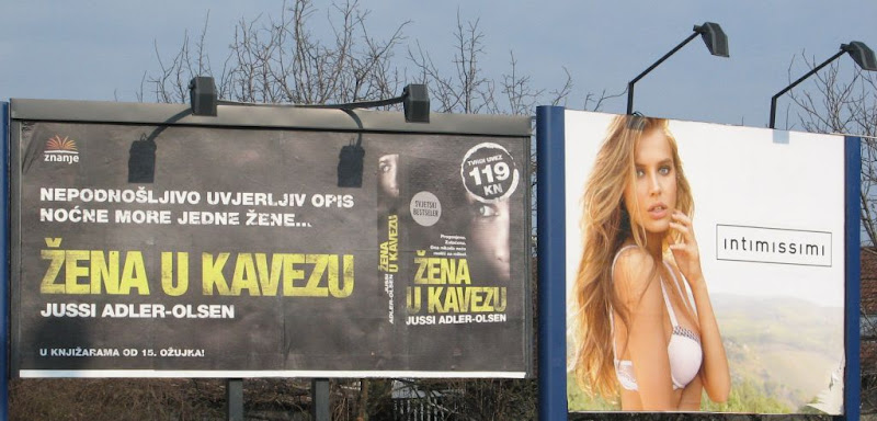 Kaj se ove oglasne lokacije tiče, pratim ju redovno jer je blizu moje firme i čini se da je lijevi pano u dugoročnom zakupu ove izdavačke firme, a desni u dugoročnom zakupu firme "Intmissimi" i onda se svako toliko dešava da se "preklope" teme reklamiranih knjiga sa oskudno odjevenim ljepoticama koje reklamiraju "Intimissimi" proizvode. ;o)Inače, ne mogu ne primjetiti kojim intenzitetom "Intimissimi" obljepljuje grad svojim plakatima, ne bi me čudilo da su njihovi plakati pojedinačno gledavši najzastupljeniji na ulicama ... i reklo bi se da im se isplati čim toliko inzistiraju na takvoj medijskoj prisutnosti.A još k tome - tko ima šansu nek baci pogled i na tekući "Lisca" oglasni plakat (recimo, jedan je u sredini Zagrebačke avenije, malo zapadnije od Ljubljanice u smjeru zapada) koji je u svim mogućim aspektima daleko inferiorniji ... od grafičkog izgleda, izbora modela (i žene i muškarca na plakatu) ... Dobra reklama zaista puno znači, štogod mislili mi o tome. :op